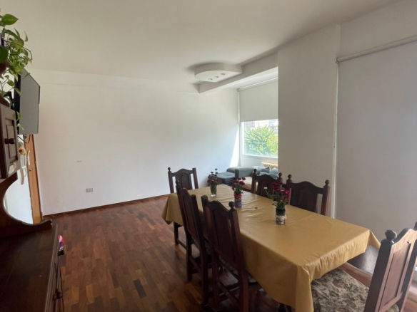 El departamento se encuentra en el primer piso al frente, dentro de un edificio de cinco pisos. Cuenta con ambientes amplios, excelente luminosidad y ventilación natural.