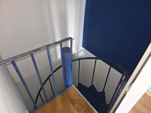 Sótano espacioso con buena luz natural, acceso mediante escalera caracol