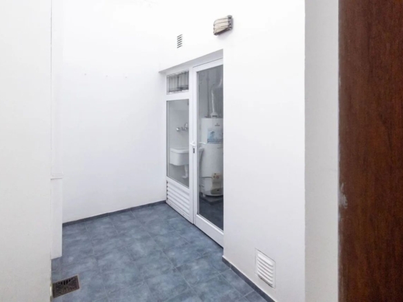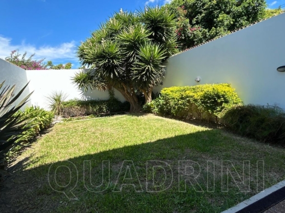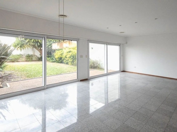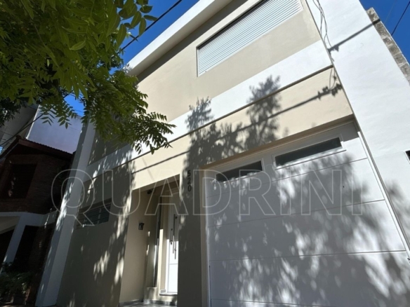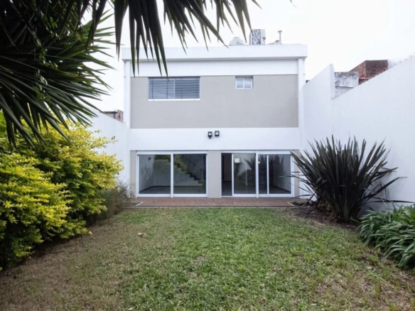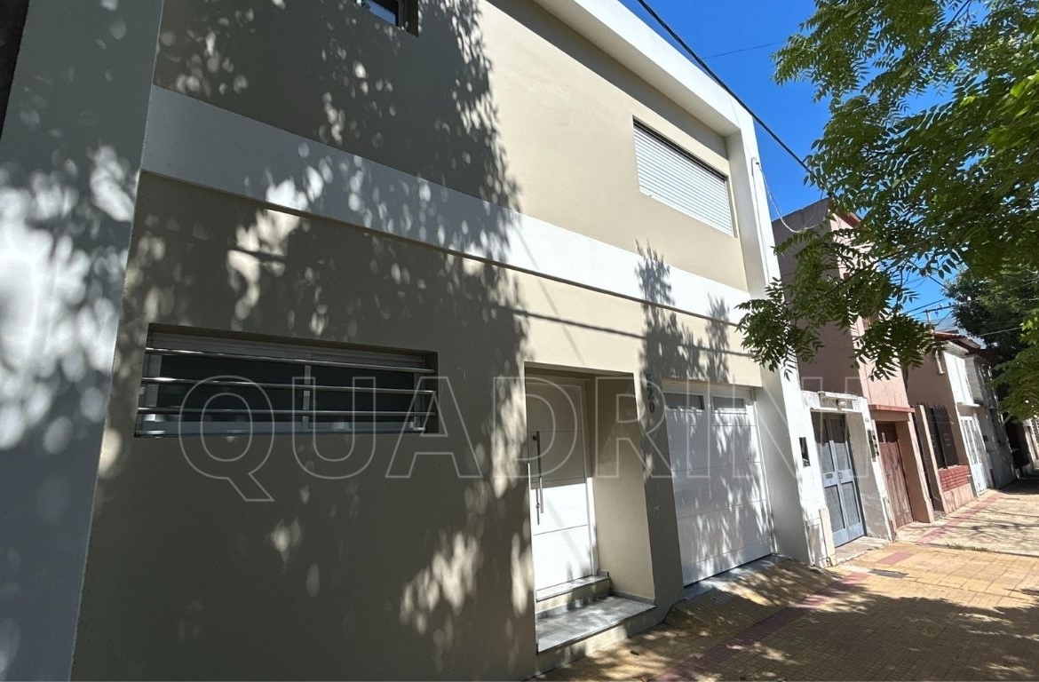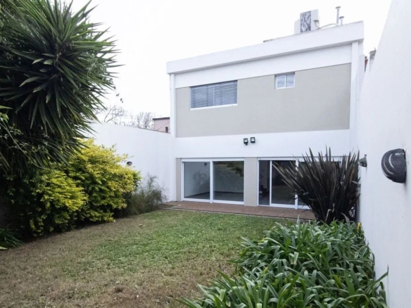 En el exterior tiene patio con superficie libre, cochera para un vehículo y garage con parrilla. Construcción en mampostería de ladrillo hueco y acceso principal con puerta de doble hoja color blanco.