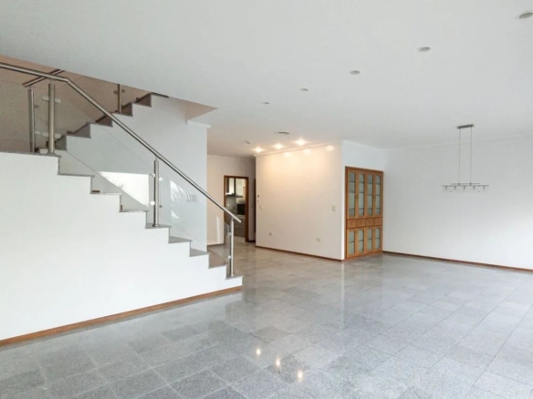 Cuenta con recibidor, vestidor, baño principal con antebaño, baño adicional en planta baja, comedor, salón de estar y cocina independiente.